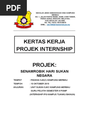 0 penilaian 0 menganggap dokumen ini bermanfaat 0 suara 19 tayangan. Kertas kerja internship senamrobik 1. KERTAS KERJA PROGRAM HARI SUKAN NEGARA SMK UNGKU AZIZ SABAK BERNAM SELANGOR LATAR BELAKANG Program Hari Sukan Negara adalah program yang telah dirancang oleh Menteri Belia dan Sukan dan telah mendapat kelulusan dari Jemaah Menteri.