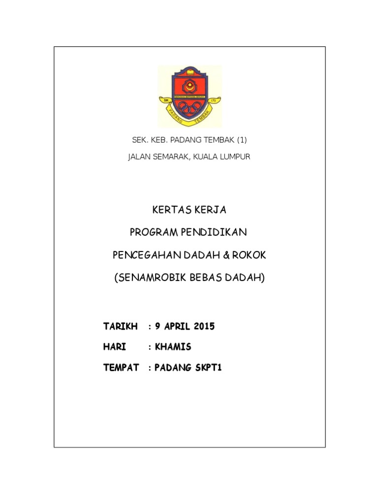 KERTAS KERJA MINGGU PEMBANGUNANSUKAN 1M1S PERINGKAT. Padang kawad kampus sultan azlan shah universiti pendidikan sultan idris nama kursus senamrobik kod kursus csr2011 kumpulan b no. Sekolah kebangsaan sungai rawang 43950 sungai pelek sepang selangor darul ehsan kertas kerja program senamrobik sempenaprogram anti dadah tempat.